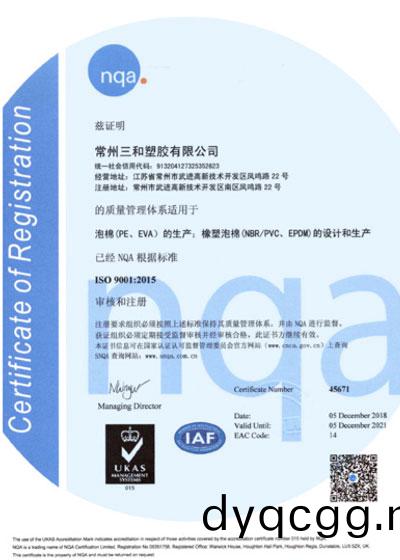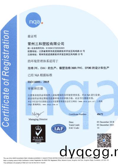 穫得(de)上(shang)海恩可埃(ai)認證有限公(gong)司(si)頒髮(fa)的(de)ISO14001:2015 咊ISO9001:2015 證(zheng)書ISO14001:2015 と ISO9001:2015 証書取(qu)得 ( 上(shang)海(hai) SNQA 社発(fa)行 )